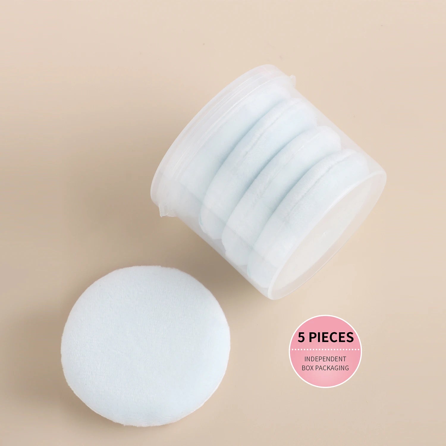 Powder Puff, 5pcs/box soft round sponge powder puff double-side skin-friendly velvet makeup powder puff tape case